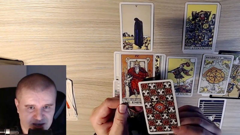 U výkladu používám dvě kamery – jednu na mě a druhou na rozložené karty na stole.